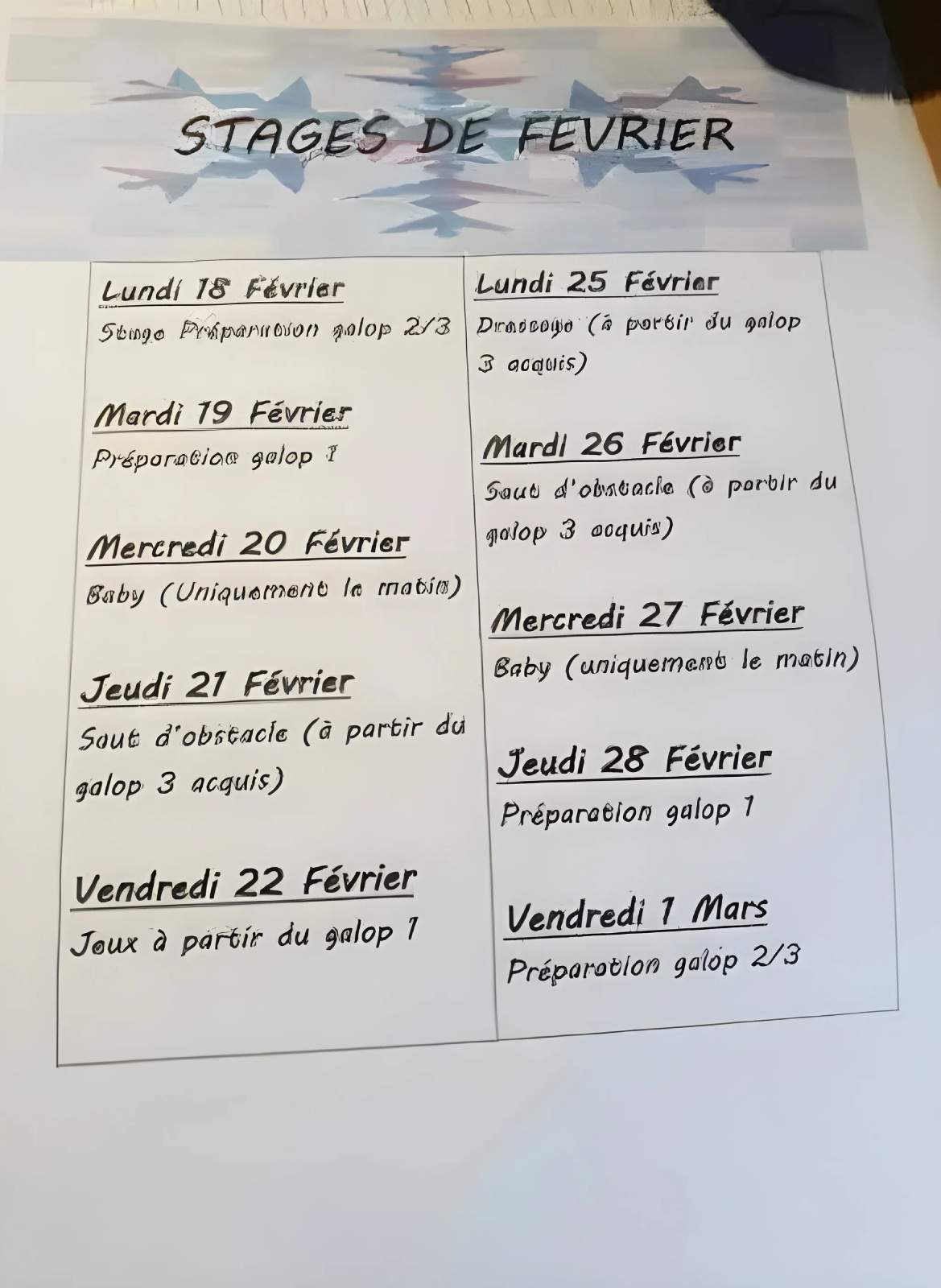 Nous sommes heureux de vous accueillir au sein du club lors de ces différentes journées stage de 8h 30 / 12h 00 et 14h 00 / 17h 00